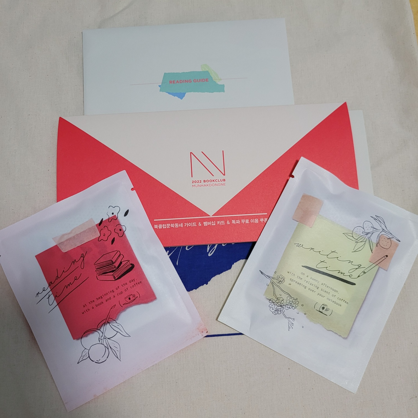 그리고 이 봉투가 마지막으로 같이 들어있었다. 이 봉투 안에는 멤버십 카드와 안내장(제휴 사용처는 거의 다 서울이라서 나랑은 인연이 없는걸로...ㅜ), 완독 챌린지 독파 무료 쿠폰(23년 3월 31일까지 사용 가능), 카페꼼마 커피 드립백, 기록이 시가 되는 노트가 들어있었다. 기록 노트를 잠깐 봤는데 양식이 신기하게 되어 있었다. 열심히 써보면서 꽉꽉 채워나가고 싶다.